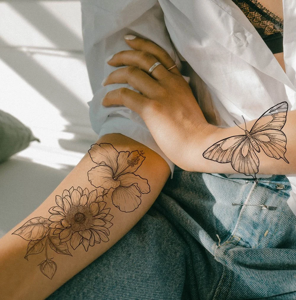 Não se preocupe: a região que vai ser tatuada é depilada no estúdio, com lâmina descartável de uso único e feita com delicadeza. Você pode escolher remover os pelos de antemão também com o método que preferir.